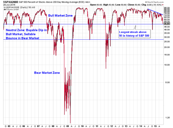 The most important thing is whether or not it is a bull or a bear market. Follow buy signals in a bull and ignore sell signals. Short sell signals and ignore buy signals in a bear market. A good example is the gold bull mkt from 1998 to 2011, and the bear market since 2011. Every oversold, touching of 200 day moving average, triangle formation worked beautifully until the top triangle on the 200 day ma broke down on an oversold situation. I read a lot of the goldbug commentaries. They have pointed out multiple buy signals for the last 4 years, they have not worked except for maybe day traders. If yesterday was not a break down, we are still wrong about thinking a bear mkt should have begun. I also like that the mkt is up preopening. I still remember the 1973-4 bear market. Everyday seemed to open up (have we finally hit the low), only to fade away before the close.