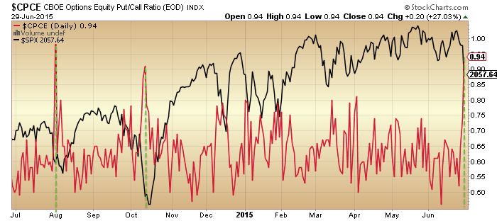 Equity put/call hit an extreme in fear. Here is the indicator’s history: