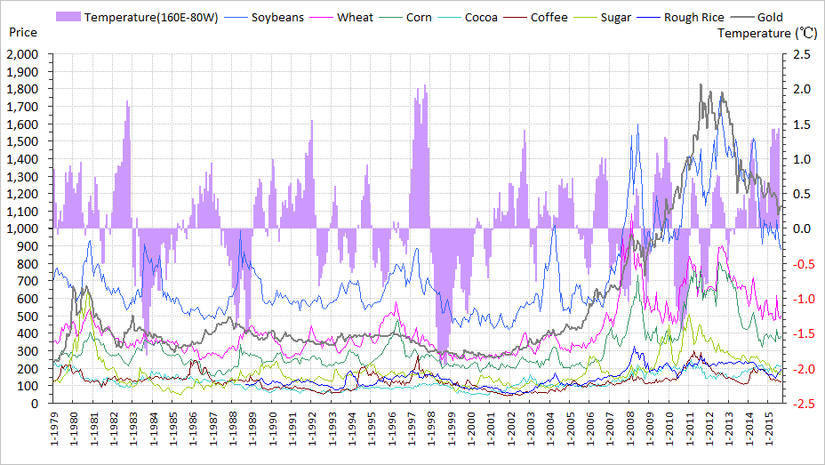 “Strong” El Ninos usually give rise to “strong” La Ninas and La Ninas produce drought in the Americas so the strong rally in the Grains may not happen until the strong La Nina immediately after the El Nino. The last strong La Nina caused a 30% reduction in Brazilian Soybeans.