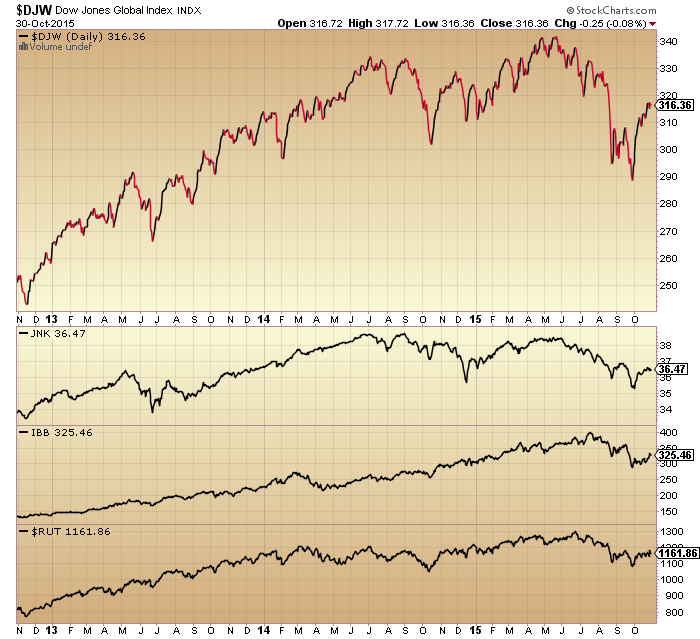 The Dow Jones World index appears to show a topping process that ended in May 2015. If that is so then we ought to be on the cusp of a new leg down.