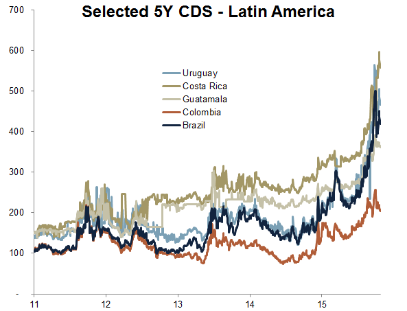 The strength in 2015 remains in services, particularly US services. As we approach the end of 2015, leading indicators for the US have weakened whilst they have improved in China and Europe. Maybe then we are going to see another rotation in outperformance, keeping the global economy and equities supported. Or maybe the negative feedback looping is now too entrenched. If the US dollar is now kicking off a new leg higher then we are likely in for more trouble, so something to watch.