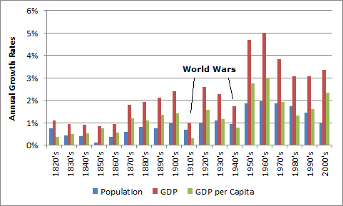 But what saved our fortunes back then was the upturn in collective demographic trends, shown here: