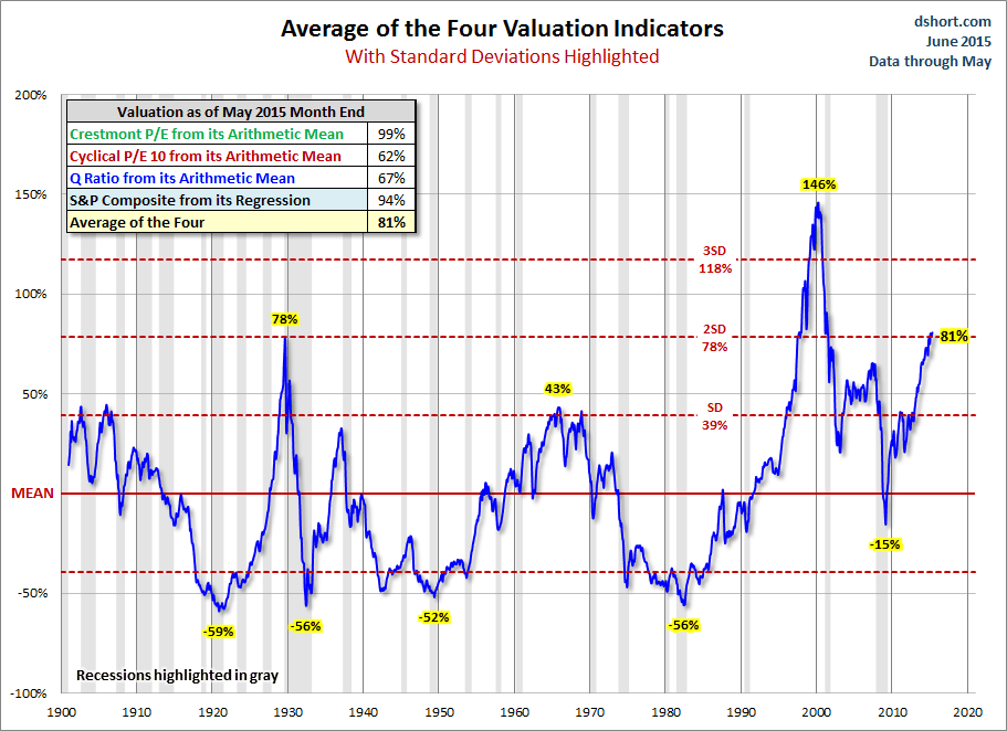 Equities struggled to make any more headway in H1 2015 with valuations in the 97th percentile historically, sentiment and leverage at all time record extremes, allocations to equities similar to previous major peaks. With a shrinking pool of buyers under demographic trends, there is a question mark over how stocks could now resume a bull market higher from here given the market appeared so saturated earlier in the year.