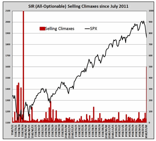 Across all the above charts in this post, three dates consistently stand out: the start of Jan, start of July and start of Sept. The topping process began the 1st January and additionally the Sornette bubble end flagged on the SP500 at the start of July and on Technology at the start of September. Insider selling peaked at the turn of the year and we have seen six major distribution days since then without any major accumulation days. Put/call ratio, bullish percent and the summation index additionally point to the relevance of the start of Jan and start of July: