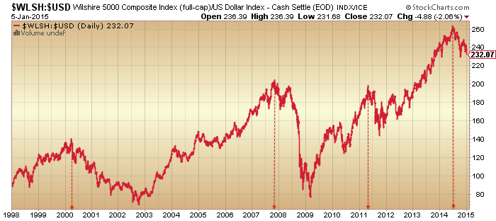 5. Leverage having peaked out around then (margin debt Feb 2014, leveraged loans July 2014)