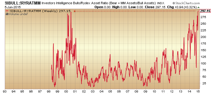 3. Allocations to equities on a par with 2000 peak (household, fund manager, Rydex)