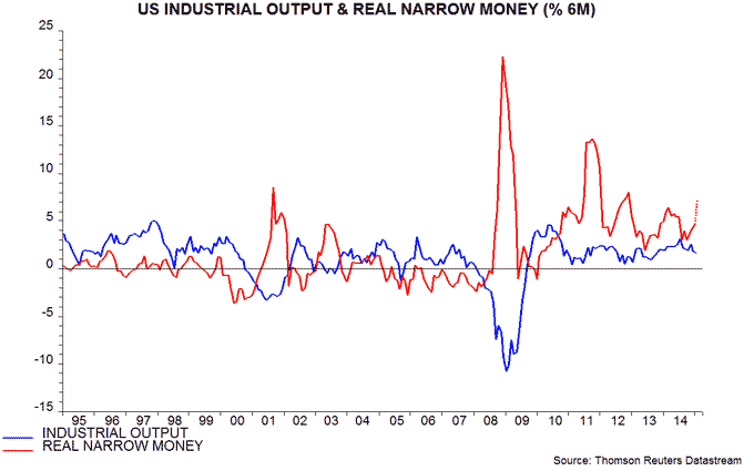 On the bullish side, there have been a couple of supportive developments. Cumulative advance-declines have broken upwards decisively, as they did in February 2014. Plus, cyclical sectors have taken over outperformance from defensive sectors now in 2015. These two developments alone certainly don’t overcome the list above, but, if stocks can now hold up whilst we go through the seasonal lows of March and April then we could perhaps again see economic surprises and earnings start to turn up again. In short, we could continue to see the market advancing in positive economic and earnings periods but not falling in negative periods despite the record lopsidedness, negative divergences and so on. Go figure.