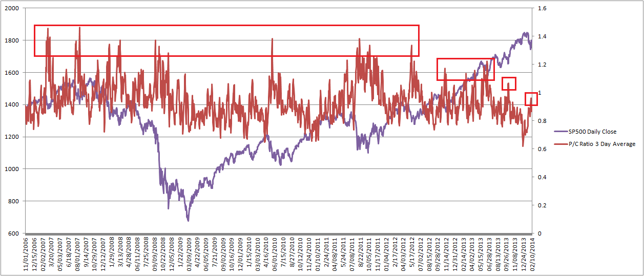 26fe710. Put/Call ratio (21 day average) also exceeds levels of previous significant corrections, and at best suggests period of consolidation with downward bias ahead for equities: