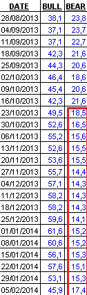 12fe16. Investors Intelligence % Bears spending a 16th week in the historic low extreme zone of sub 20: