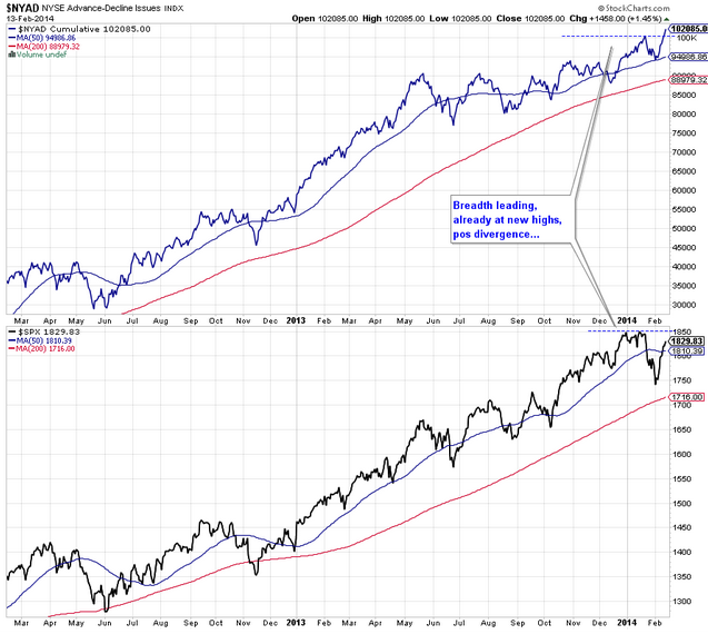 From a bullish perspective, small caps outperformed yesterday and advance-declines continue to be strong: