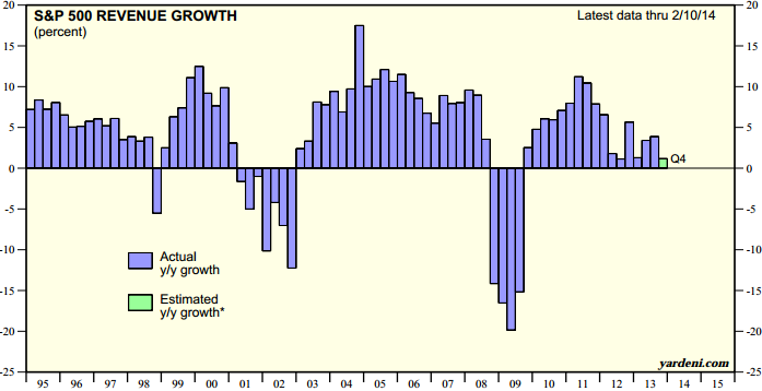 The latest picture for the Q4 earnings season shows blended revenue growth at just 0.8%, and of those companies who have given forward guidance for Q1 2014, 80% have given negative rather than positive guidance.
