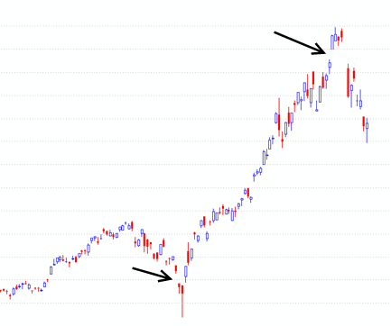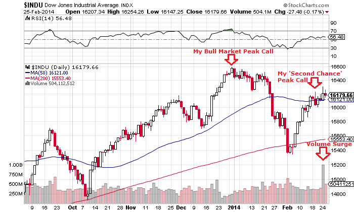 1. Dow daily candles and Monday’s volume print at high reversal: