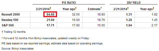 9. Russell 2000 index p/e is currently 74.8; Russell 2000 to SP500 valuation differential at all time record