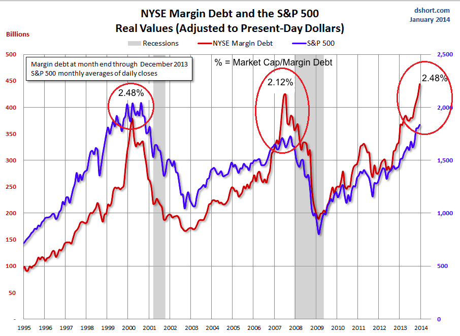 9. Investor leverage spiked to real and as a percentage of market cap records: