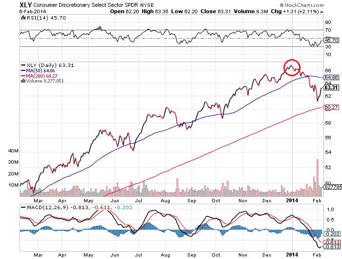 7fe44. US Consumer Discretionary and other cyclical stock market sectors peaked:
