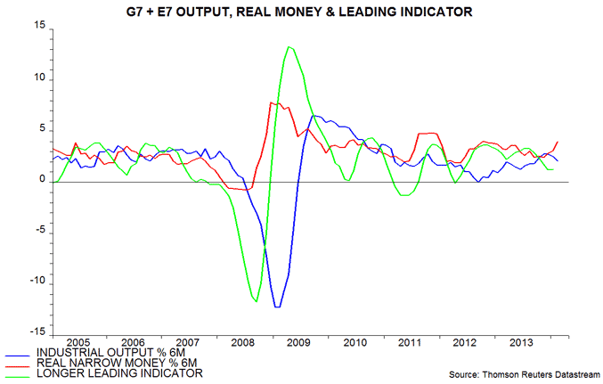 7fe10Plus, leading indicators (narrow money and OECD derived) forecast that global economic growth peaked out around the turn of the year.