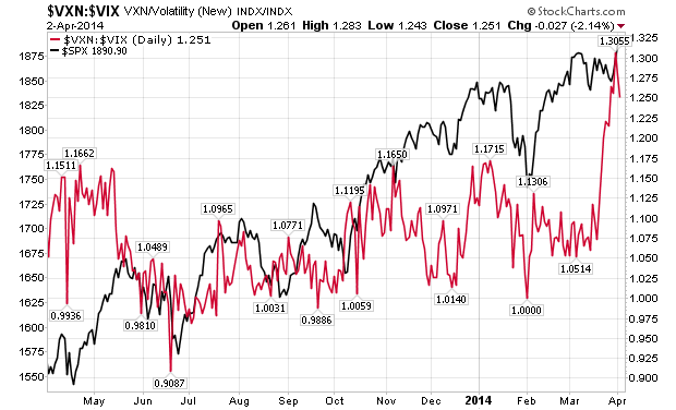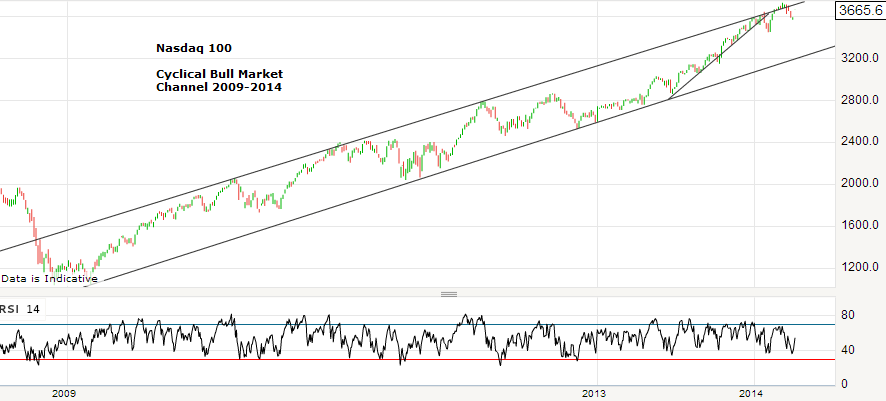 The last 2 years gains in the wider US markets were approximately 80% multiple expansion and 20% earnings growth. The justification for the multiple expansion was (1) ‘Fed policy trumps all’ and (2) stocks frontrunning a ‘normalisation’ in economic growth and earnings. Now: QE is being wound down, Q4 2013 GDP and Q1 2014 GDP estimates are being revised downwards, earnings estimates are being revised downwards and for Q1 2014 82% of companies so far have issued negative earnings guidance. Those justifications have largely evaporated.