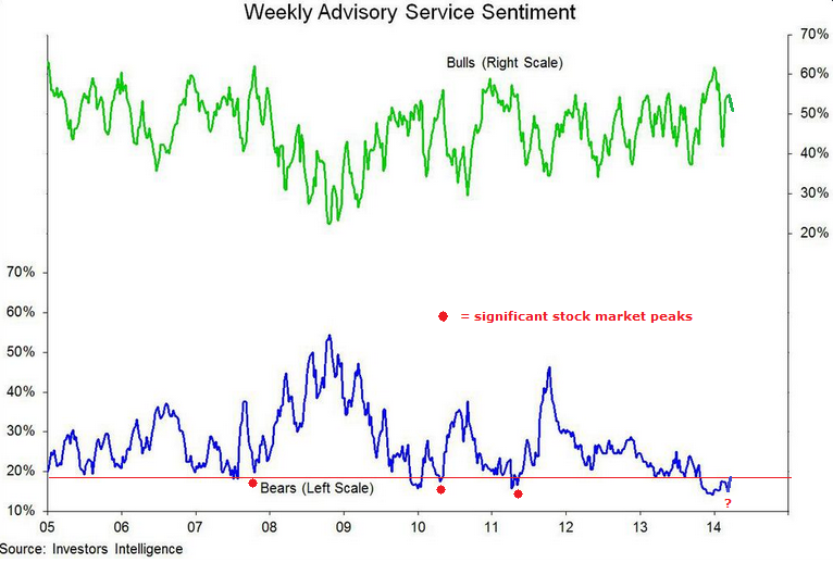 16. Investor Intelligence % bears levels and pattern similar to previous significant stock market peaks