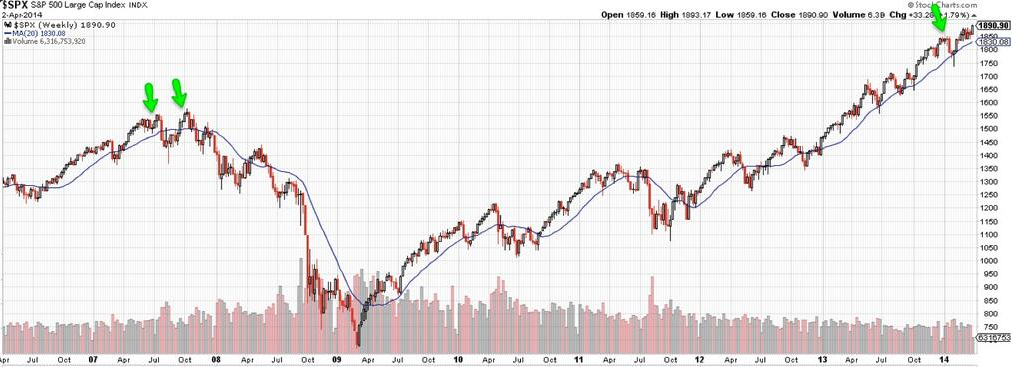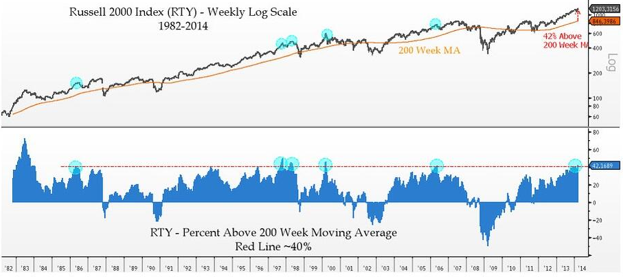 2. Historic levitation above longer term moving averages and lack of 10%+ correction since 2012