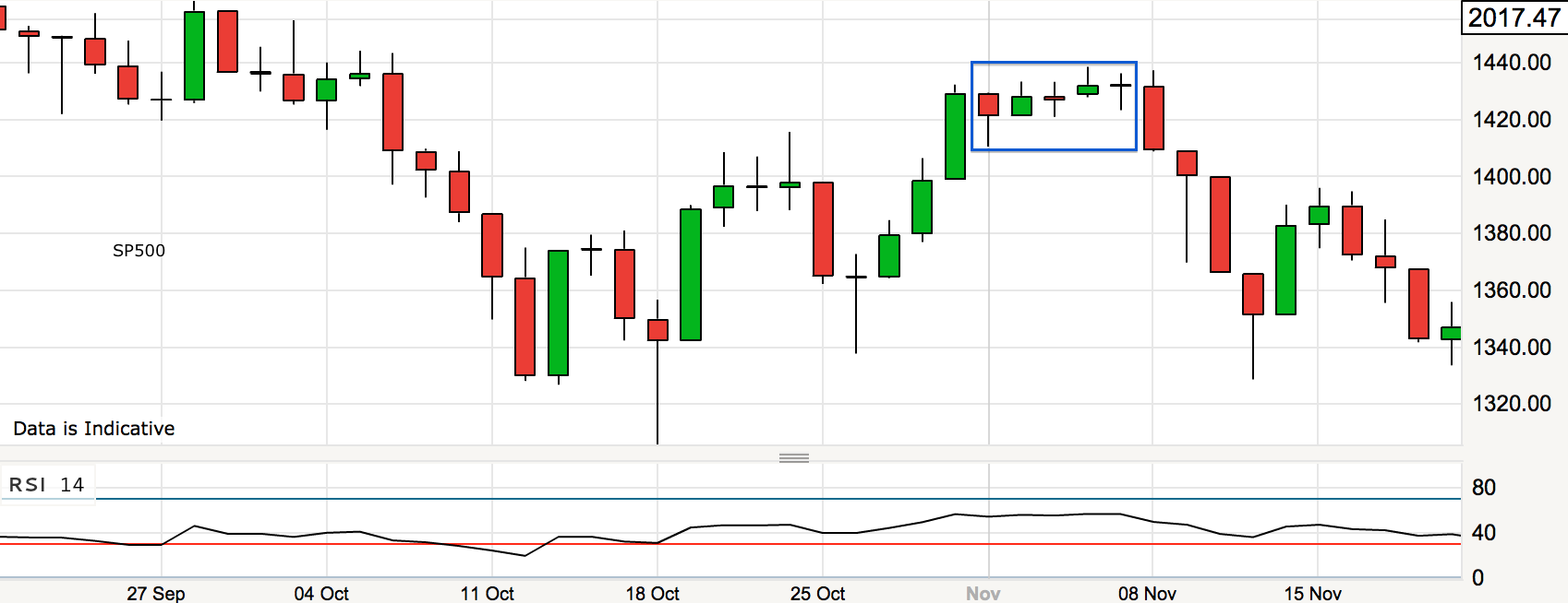 Screen Shot 2014-11-06 at 06.29.45It took a few days to reverse, but the key is no significant break higher. Today is the full moon (or early tomorrow if in the US) which could mark the reversal, plus we have a potential gap down trigger from ECB disappointment. If the ECB surprise to the upside then I still don’t have a case for a continued rally, and that’s because I don’t see the fuel for higher.
