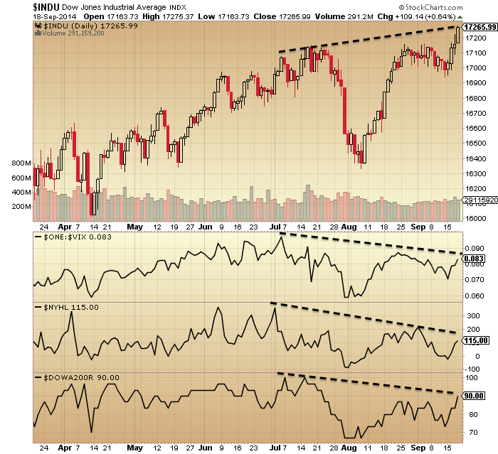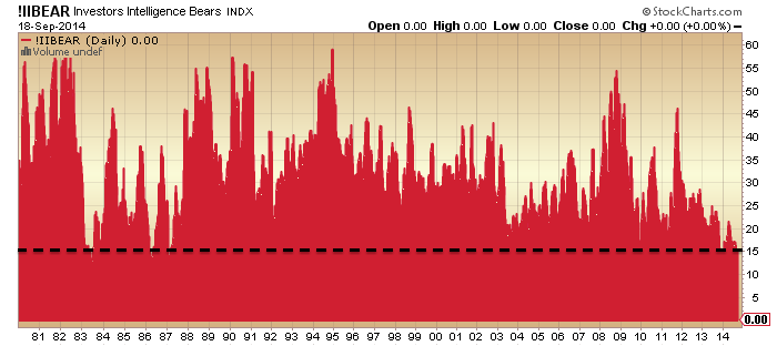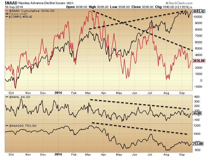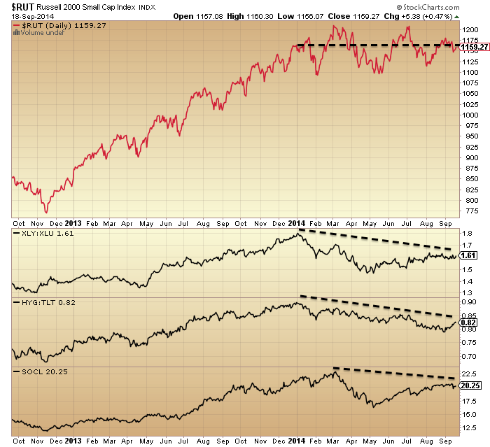 Plus, many topping indicators for equities have congregated since the end of 2013, which I have covered exhaustively on this site. And to be clear, if small caps break down then large caps will follow, in line with history.