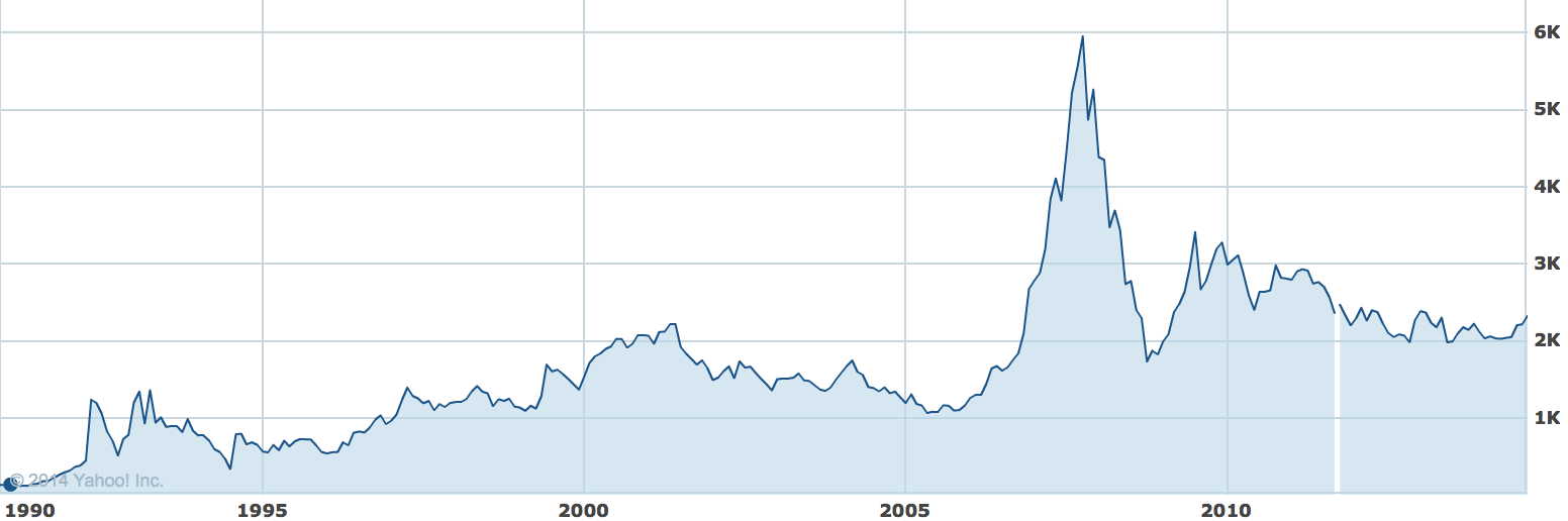Going back to the title of this post, I believe the most popular answer amongst analysts for ‘the only chart that matters’ would be the QE versus stocks chart, but in a recent post (here) I instead showed that ‘Fed policy trumps all’ has been the mantra rather than the driver, just as into the year 2000 internet stocks were ‘revalued’ on expectations rather than earnings. In other words, the speculative mania is driven by the influence of the sun but people unwittingly assign some other justification for buying high: a ‘new normal’ which ultimately fails to be.