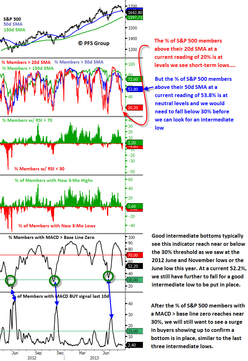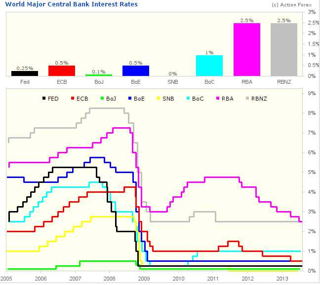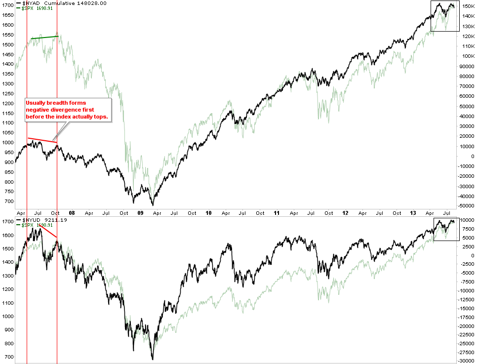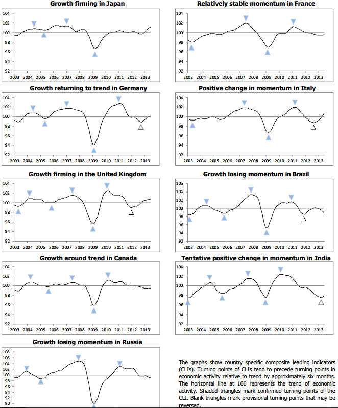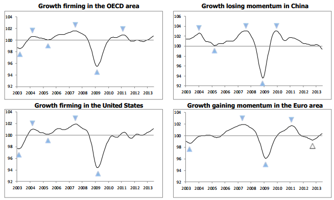 Weak but sustained growth and low rates are typically a good environment for equities, which would be a framework for equities to move higher and reveal the consolidation since May as digestion in an ongoing cyclical bull. In supportive of this, the Nasdaq is now convincingly at new highs for this cyclical bull, and the Dax is back testing its high-to-date (which is also the all-time nominal high). If other indices break up and away from the ‘topping range’ then we would be looking to 2014 for a cyclical top as a multi-month topping process would have to start over. As noted in a recent post we have some evidence for a topping process in play since May, but also some normal signs missing. This should be resolved one way or the other soon.