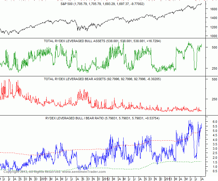 If, alternatively, the solar peak is ahead late 2013 into early 2014 (which is SIDC’s second option, and also Leif Svalgaard’s prediction – shown below), then that 2011 CCI peak is too far away and if the theory is correct we should get another commodities peak closer to the solar peak, which would mean a higher peak in the CCI ahead. We have the possible seed for this in a fledgling CCI uptrend following a base established in July/Aug 2013 together with their historic performance as late cyclicals in what is possibly a cyclical topping process in equities occurring. However, this CCI uptrend is currently tentative, devoid of momentum and without broad participation thus far. The dips in oil and precious metals at the end of this week cast further doubt for now, but their drops coincided with money flowing back into equities. If equities are in a topping process then money should flow back to commodities in due course as they go outperform as late cyclicals. I would suggest the higher peak in CCI to be possible as speculative money pours in, under these easy money conditions globally. ZIRP and QE may not be able to generate growth but they can generate bubbles.