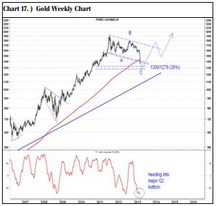We might therefore take a fresh look at it and consider the Nikkei was in a downtrend for a decade (or one solar cycle) and then turned sideways as the demographic trends in m/o and m/y changed upwards. The massive spurt since October 2012 therefore looks reasonable, as a belated catch up to trend. However, not all is well for Japan. The dependency demographic trend is the worst around the world in that it is likely to become devastating by mid-century. It also has the largest debt-to-GDP ratio in the world, over 230%. Interest rates are effectively zero, and cannot be allowed to rise much because of the servicing of the debt. There is little hope of major GDP growth in the years ahead because of the dependency trends and the debt. Despite this, Japan is going hell for leather in a bid to restart the economy and ignite inflation, now doubling money supply from 29pc of GDP to 56pc of GDP by 2014. The first result of this ultra-aggressive policy has been a swift 20% drop in the yen. As Japan is an energy importer, this has immediately produced a big uplift in energy price inflation. If I am correct in predicting a pick up in money velocity here, and also correct in a commodities/inflation peak ahead relating to the solar maximum, then I suggest there is the potential for Japanese inflation to quickly become problematic. As the government cannot combat with rate rises because of the debt servicing, the risk then would be hyperinflation. I know hyperinflation is overhyped, but I just wonder whether it is worth an outside bet here.