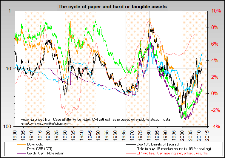 A fairly simple 100 year history: a long secular bear followed by a long secular bull followed by a long secular bear that potentially just ended at the turn of 2012 into 2013. The secular turns fell very close to solar maxima.