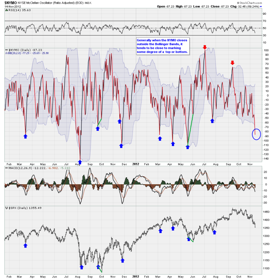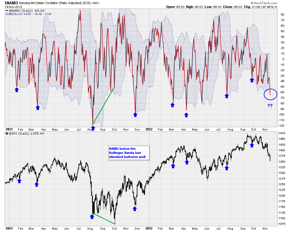 And this chart is a cominbation of Nasdaq new highs – new lows and NYSE new highs – new lows. Again, we don’t see divergence yet, so would want the same as above – pullback then push up with negative divergence.
