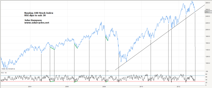 It is curious to see the Hang Seng breaking out and the Shanghai attempting to bottom whilst the Nasdaq is potentially peaking. How might that resolve? Well, my overall message is that a market top should take some months yet to fully form, so there is no rush for everything to align. Solar and secular history suggests equities should top first and then commodities should make their blow off top. It is therefore appropriate that we see some strength or at least stabilisation in China, as a key demand source for commodities. US indices are also amongst the most expensive by p/e whilst China is in single digits. It would therefore fit if the US indices were to roll over first.