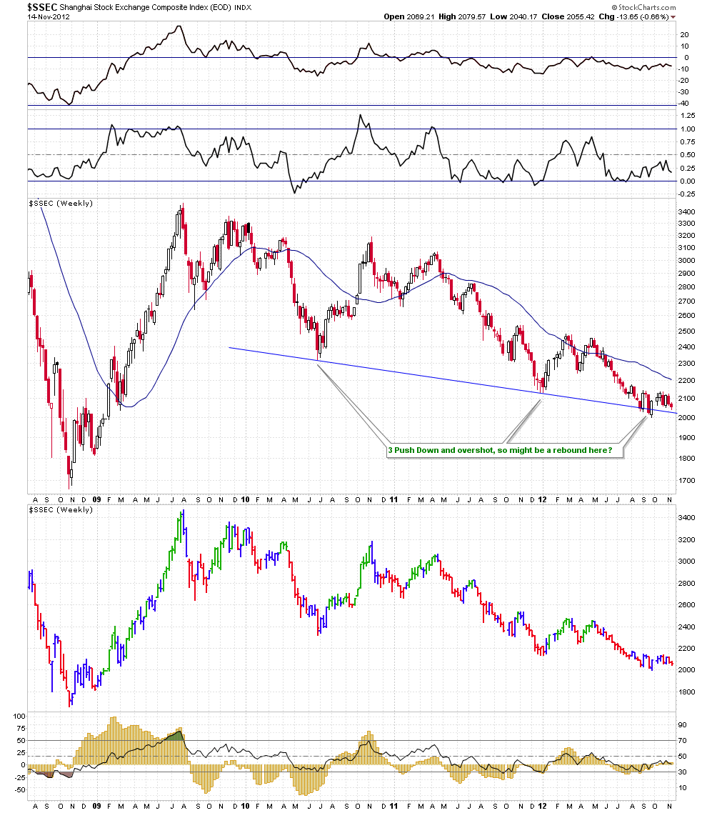 The Hang Seng, meanwhile, has now broken out of its similar long term triangle, and it is breaking out on a p/e of 11, which is historically relatively cheap. Unless it is pulled back in this week then that break would be validated.