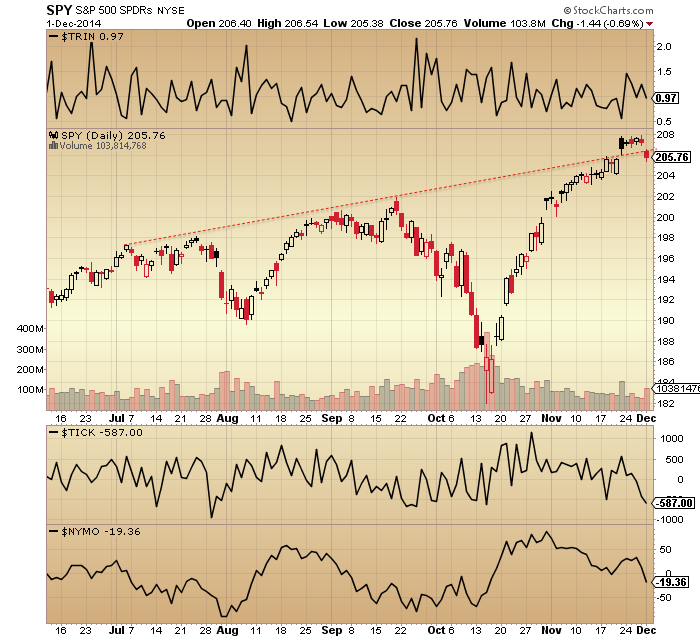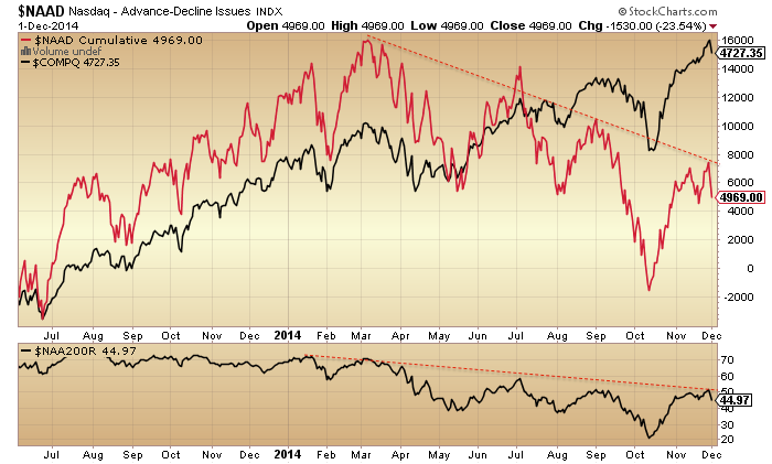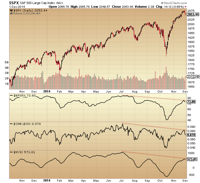 The crazy stretching of indicators delivered this year made for the most difficult year of trading since 2000, the last solar maximum. So if I can make one prediction for 2015, it is that it will be easier and more predictable. I am short equities and long gold and expect patience to be finally rewarded. I wish you all the best for the coming year.