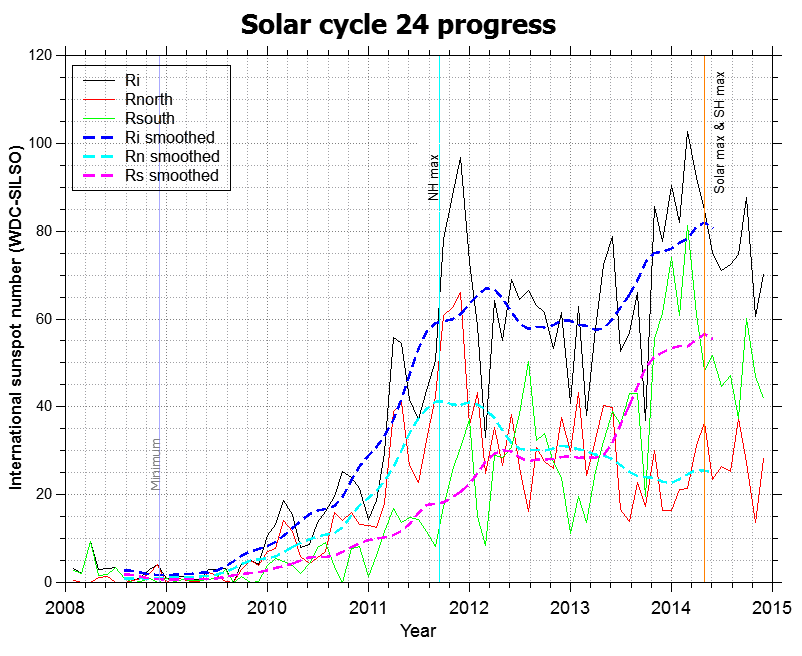 2. Solar maximum looks to have occurred around April 2014, marking peak speculation. Equities mania on borrowed time thereafter.