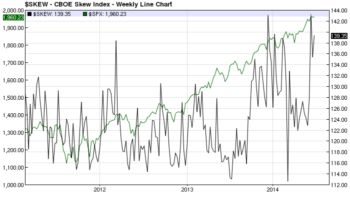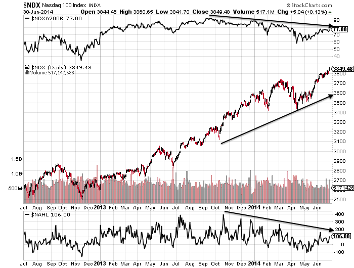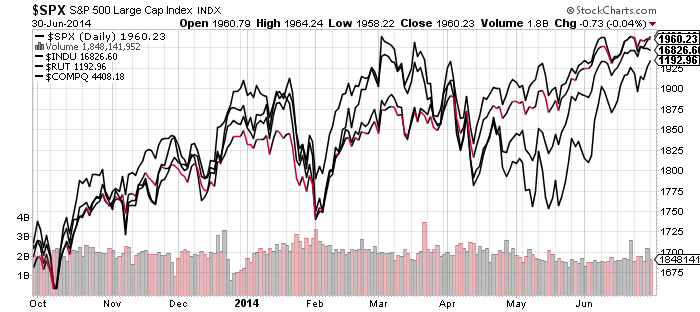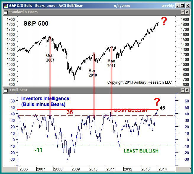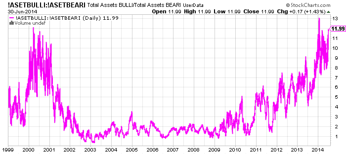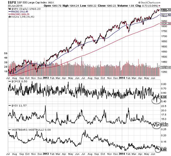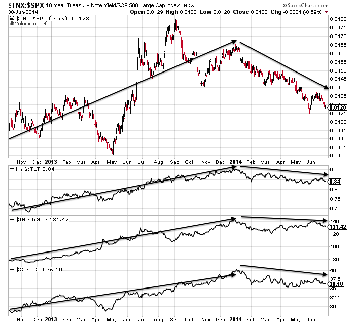 Bullish percent to call/put, cyclicals to defensives, high yield to treasuries and small cap equities to bonds all peaked very close to the 1 January 2014 date.