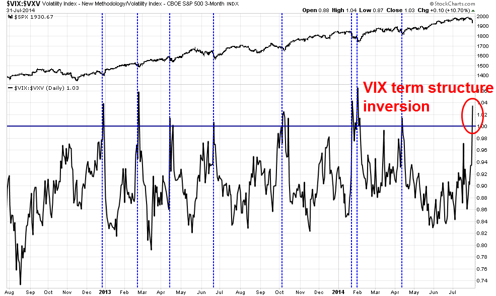 Stocks:dollar, stocks:bonds, FTSE Eurostox and NYSE composite indices, NSYE breadth, volatility and junk:treasury bonds, oil, US dollar (inverted), leveraged loans and junk bonds all peaked very close to the 27 June 2014 date.