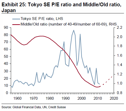 The next chart shows the middle/old trend for Japan, which is a tailwind out to 2020, like the middle/young for this country.