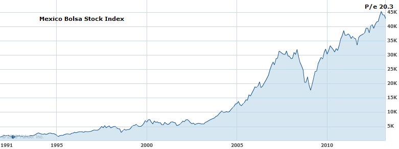 So combining all four demographic measures for the US, we have strong odds of a secular bull from around 2020 to 2030. Prior to 2020 it may struggle to gain traction, and need a deeper washout in p/e. Let’s not forget that we are dealing with ‘real’ Dow/SP500 and p/es, so inflation matters. A sharp rise in inflation could drive down p/es whilst the index goes sideways. A lack of inflation could mean the index falls nominally before embarking on a momentum secular bull run from 2020-2030. Either way, because this demographic uptrend from 2020-2030 is ahead, we might not expect a major washout in p/e in the US. The SP500 and Dow are amongst the more expensive indices by p/e around the world but this could reflect the positive demographics ahead.
